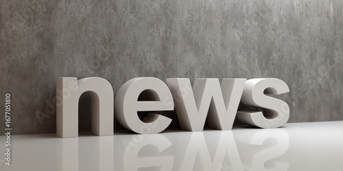 3D White NEWS Letters Against Gray Concrete Wall Background, Symbolizing News, Media, and Information