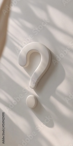 3D white question mark on a light background symbolizing mystery, uncertainty, curiosity, problem solving, minimalism, abstract concept
