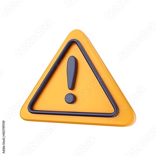 3D Yellow Warning Triangle with Exclamation Mark – Safety and Alert Symbol for Digital Use
