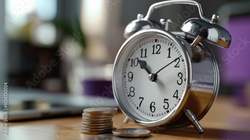 3D-Uhr mit Münzen symbolisiert Investitionswachstum und Finanzplanung