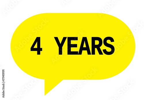 4 YEARS text in yellow simple speech bubble.