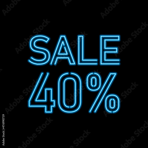 40 percent SALE glowing neon lamp sign. Vector illustration.