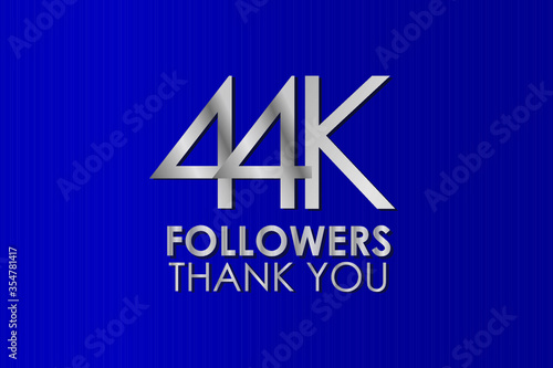 44K, 44.000 Thank you follower. Silver Color on Blue Background, for Social Media, Internet Account - Vector