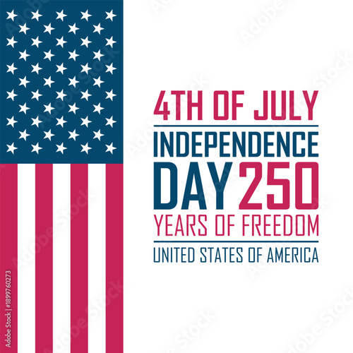 4th of July, United States Independence Day greeting card. 250 years of freedom. American flag. White background. Vector illustration.
