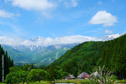 初夏の青鬼地区。白馬、長野、日本。5月下旬。