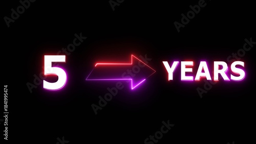 5 years counting number illustration. Celebration neon 5 years.
