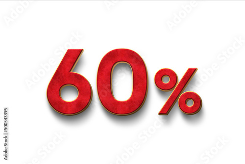 60% Red Sixty percent on a white background. 3d render illustration.