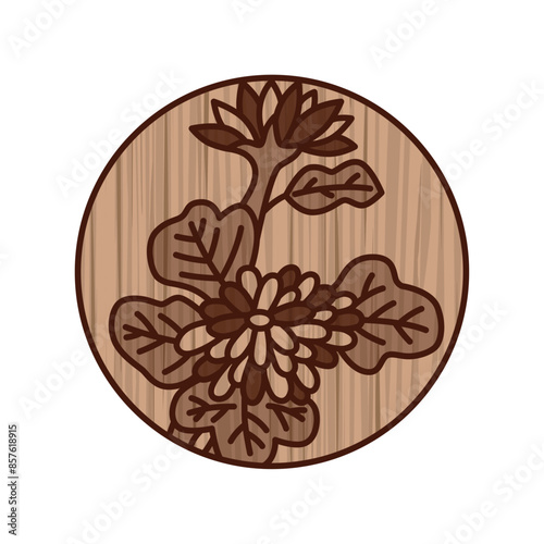 木彫り風円形シンプル花札 長月 菊 9月 菊のカス