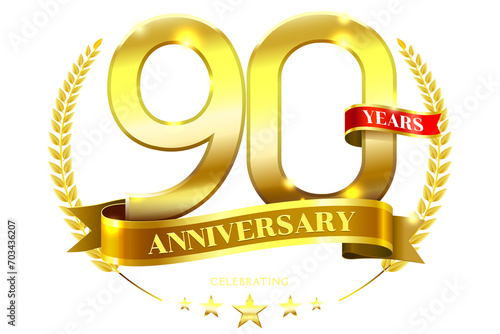 90 Years Anniversary with laurel wreath Golden Ribbon