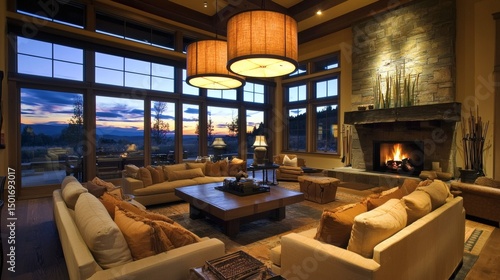 93. Dining room with ambient lighting above rectangular table