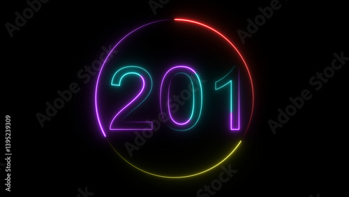 A glowing circular and neon number 201 illustration . on a black background. and creating a stunning illustration 4k illustration