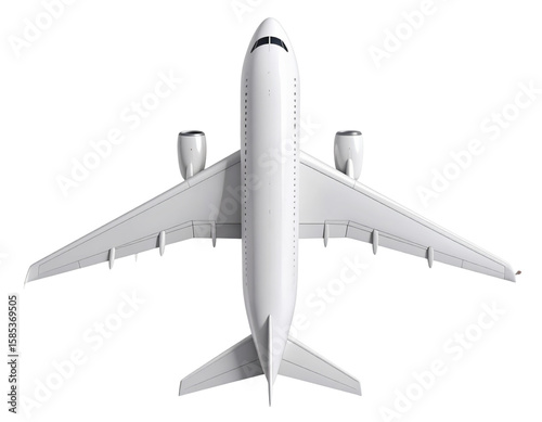 A - Minimalist White Airplane Silhouette from Above, Isolated on Transparent Background”