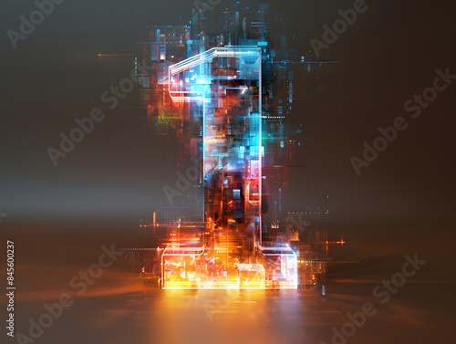 a 3D animation of a fire number one with flames and smoke, set against a dark background.
