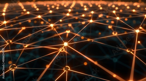 A 3D network grid with interconnected nodes glowing brightly, representing the robust and successful nature of strategic business management.