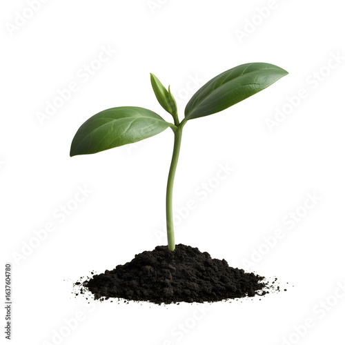 A 3D plant seedling sprouting from a small pile of soil.
