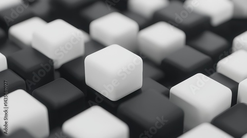 A 3D rendering of a grid of cubes in black and white.