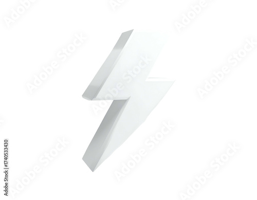 A 3D-rendered white lightning bolt against a solid black background