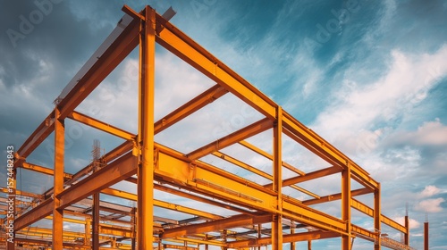 A 4K photo of structural steel framework set against a sky background, emphasizing construction readiness.
