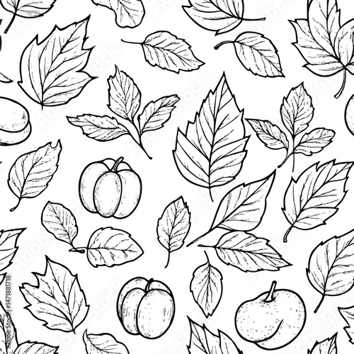 A Autumn leaves and fruits outline pattern