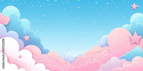A background of pink and blue pastel clouds with stars