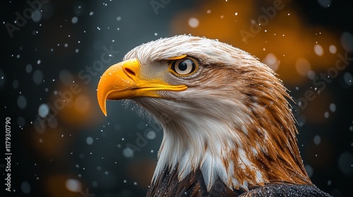 A bald eagle, sharp-eyed, representing the magnificence of birdlife and the vastness of the skies.