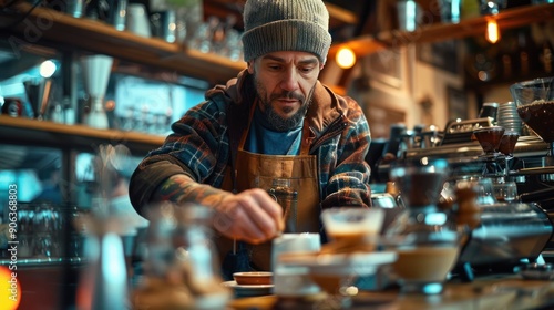 A barista creating a latte art heart, focusing on the artistry and skill involved