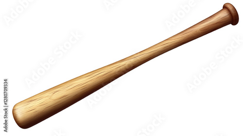 A baseball bat lying diagonally across the frame, with a natural wood grain design, isolated on a transparent background for a clean look