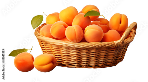 A basket of apricots with a transparent background.