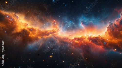 A beautiful, colorful galaxy with orange and blue clouds and stars