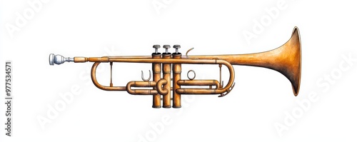 A beautiful golden trumpet showcasing intricate details and craftsmanship, perfect for music themed designs and projects.