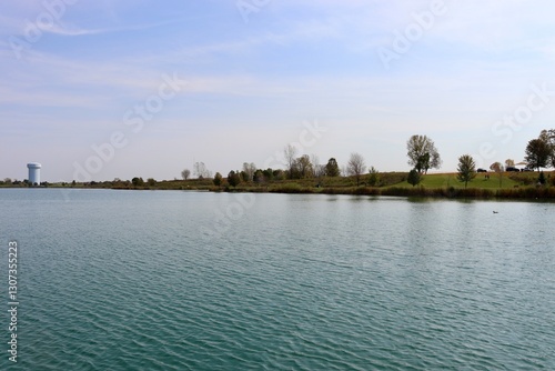A beautiful lake in the countryside on a sunny day.