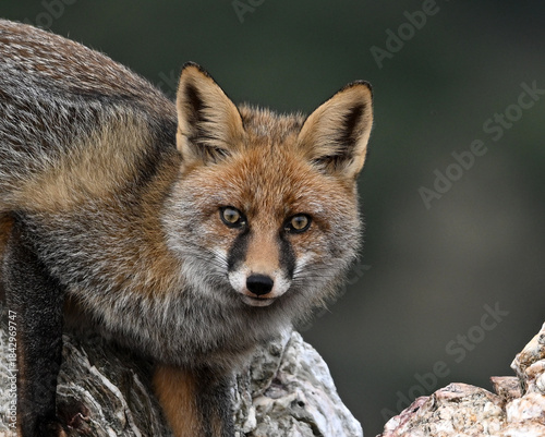 a beautiful red fox in the mountain