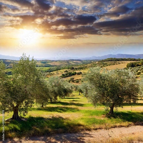a beautiful view of a countryside road through the trees and fields under the sunlight