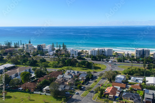 着陸する飛行機から眺めるゴールドコーストのとても美しい海岸風景A beautiful view of the Gold Coast from a landing plane