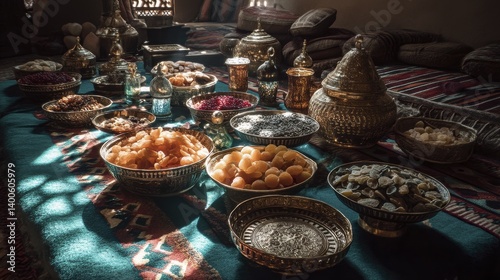 A beautifully lit studio shot of various dried fruits arranged artfully for Eid - currants styling arrangement fruit food