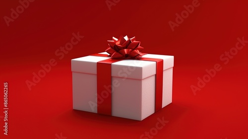 A beautifully wrapped gift box with a ribbon on a solid red background.