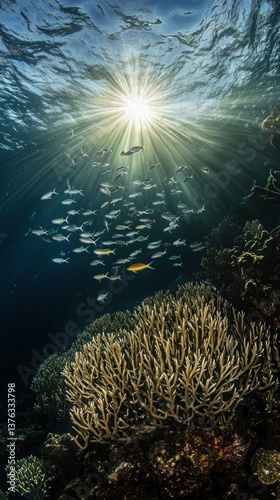 A bird's-eye view of a tropical island surrounded by crystal-clear waters and coral reefs