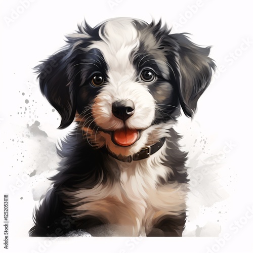 a black and white dog with its tongue out