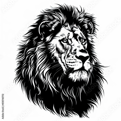A black and white drawing of a lion