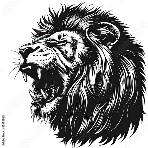 A black and white drawing of a lion