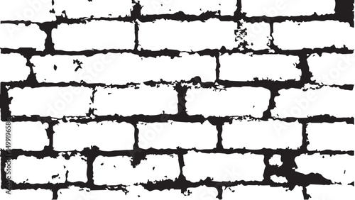 A black and white grungy brick wall. Brickwork grunge abstract background design. Vector distressed overlay brick wall.