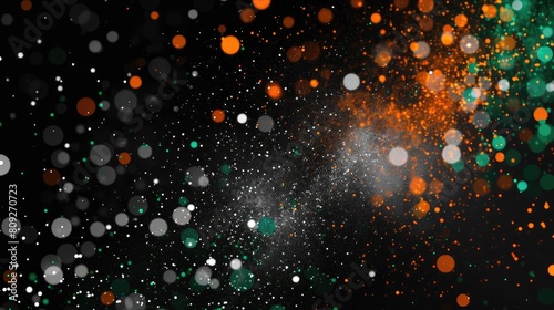 A black and white photo of a blurry background with a lot of white and green dots. The photo has a dreamy, ethereal quality to it