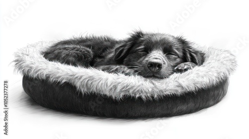 A Black Dog Sleeping Peacefully in a Fur-Lined Bed