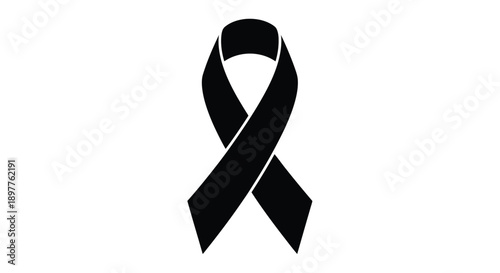 A black ribbon awareness symbol against a white background silhouette