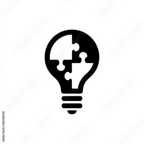 A black silhouette of a lightbulb, with two white puzzle pieces inside