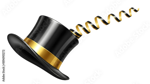 A black top hat with a gold band and spring