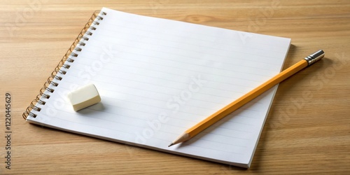 A blank, unfinished, and empty page with a pencil and eraser scattered around it