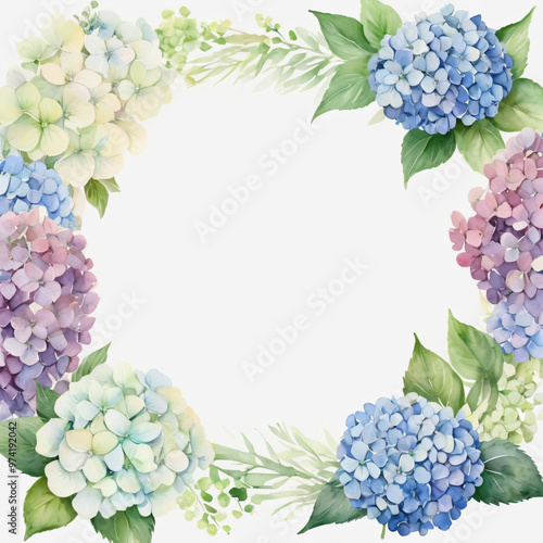 A blank wedding invitation adorned with a watercolor floral frame