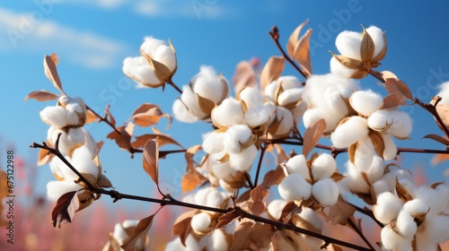 A blossoming organic white natural cotton plant in a sustainable field Scientific name: Gossypium