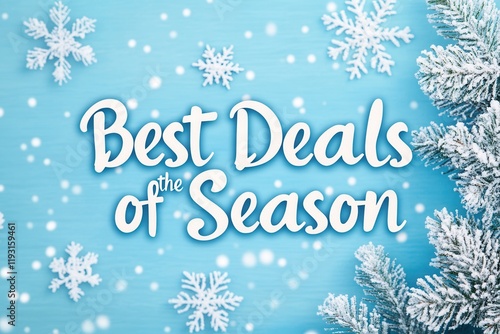 A blue background with snowflakes and best deals of the season. Phrases Highlighting Discounts